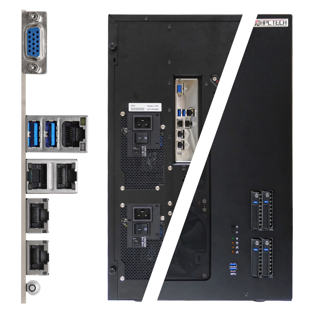 LAN | ・2 RJ45 (10GbE) by Intel X710-AT2 ・2 RJ45 (1GbE) by Intel i210 ・1 Realtek RTL8211F for dedicated management GLAN |