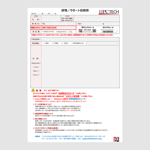 弊社よりご購入のワークステーション、ラックマウントサーバ等の修理・サポートをお受けいたします。